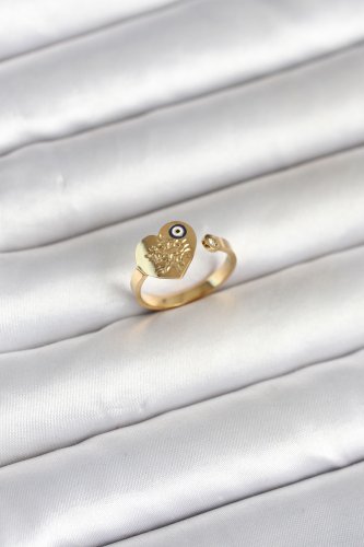 316L Steel Gold Color Evil Eye Detail Heart Model Women's Ring