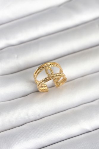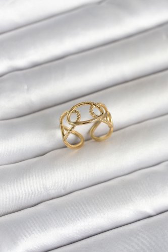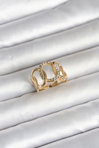 316L Stainless Steel Gold Color Vintage Model Women's Ring with Zircon Stones