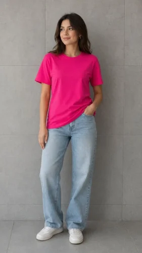Basic Cotton T-Shirt, Crew Neck, Solid Color, Relaxed Fit T-Shirt - Fuchsia