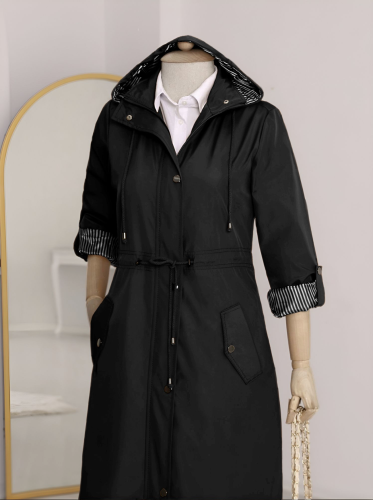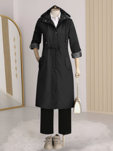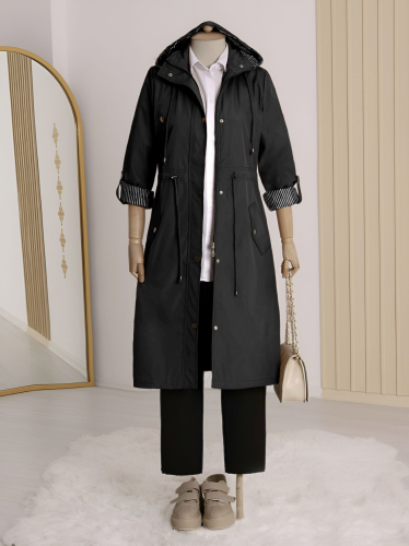 • Striped Lined Trench Coat - Black