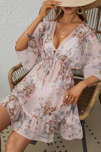 Multicolored Floral Patterned Waist Tie Pareo P-3001