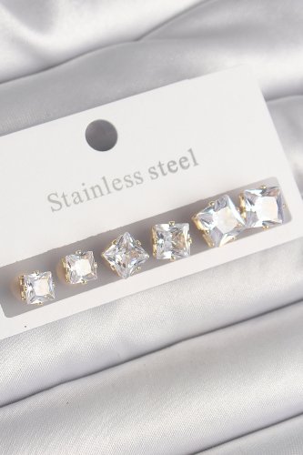 • 316L Steel Gold Color Square Zircon Stone Model Women's Earring Set