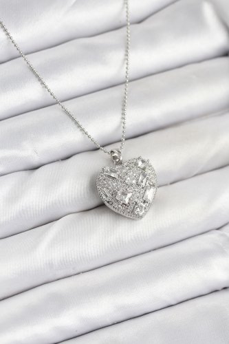 316L Steel Chain Silver Zircon Stone Heart Women's Necklace