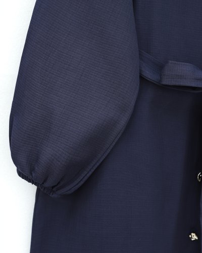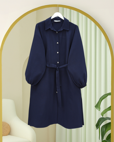 Long Muslin Tunic with Elasticated Cuffs and Drawstring Waist - Navy Blue