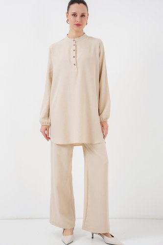 • 6678 Linen Tunic and Trousers Two-Piece Set - Beige