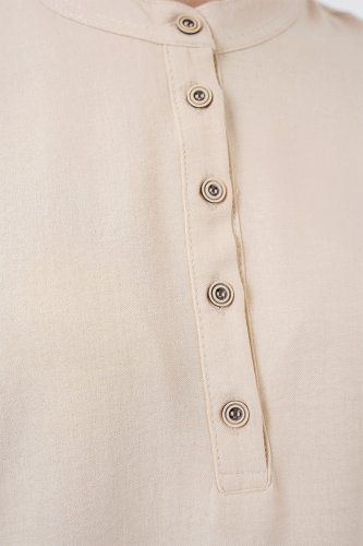 6678 Linen Tunic and Trousers Two-Piece Set - Beige
