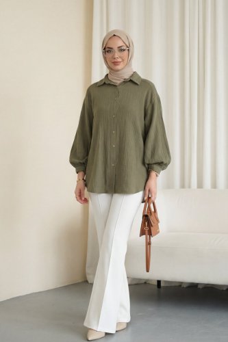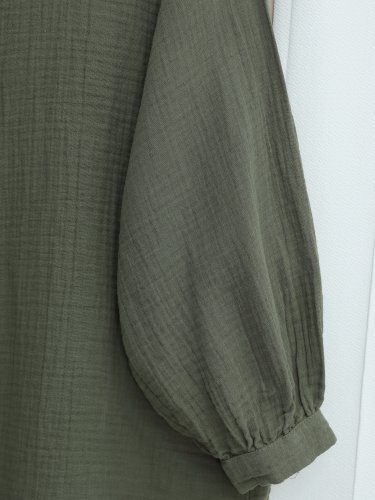 Oval Cut Button-Down Muslin Shirt - Khaki