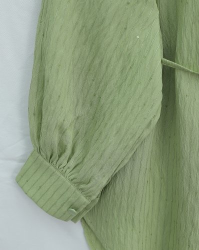 • Belted Shirt with Stitching and Sequin Details - Light Green