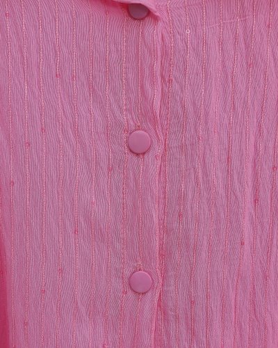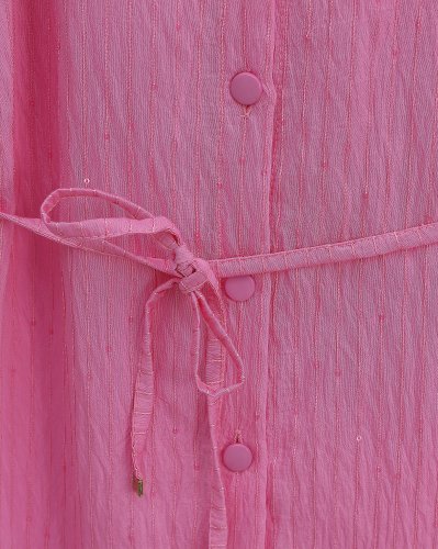 • Belted Shirt with Stitching and Sequin Details - Pink