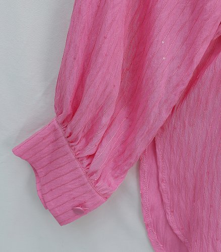 Belted Shirt with Stitching and Sequin Details - Pink