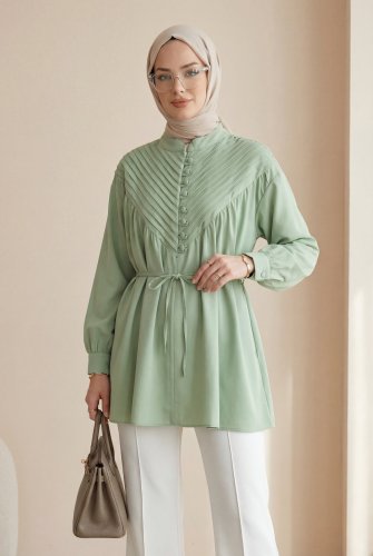 • Half-Button Ribbed Lace-Up Shirt - A. Yeşil