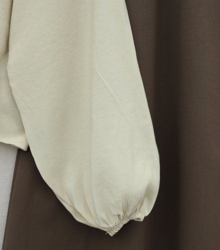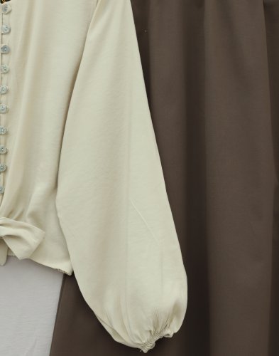 • Modal Shirt with Tie-Up Hem, Elastic Waist and Cuffs, and Button Closure - Beige