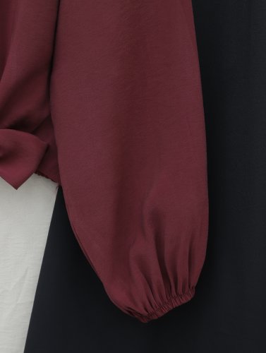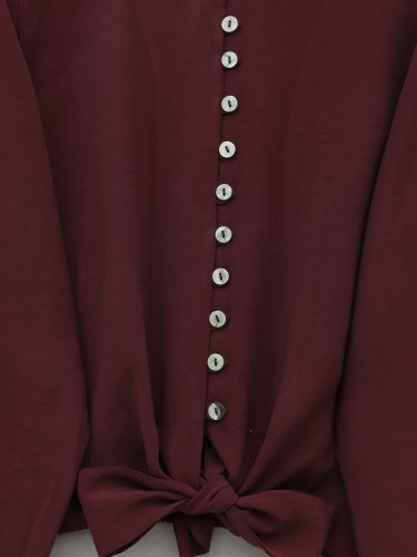 Modal Shirt with Tie-Up Hem, Elastic Waist and Cuffs, and Button Closure - Burgundy