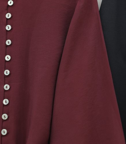 • Modal Shirt with Tie-Up Hem, Elastic Waist and Cuffs, and Button Closure - Burgundy