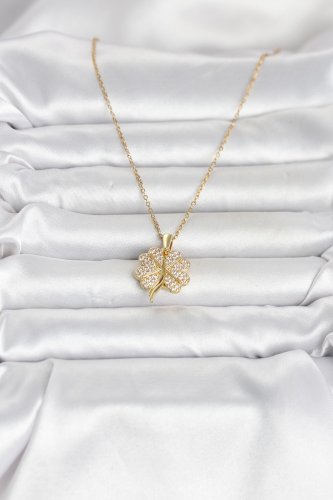 • 316L Stainless Steel Gold Color Openable Clover Model Women's Necklace with Zircon Stones