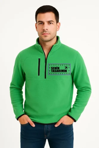 Front and Back Fleece Sweater with Stand-Up Collar - Green