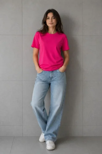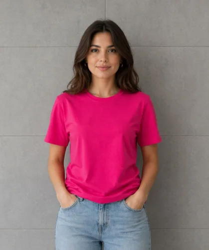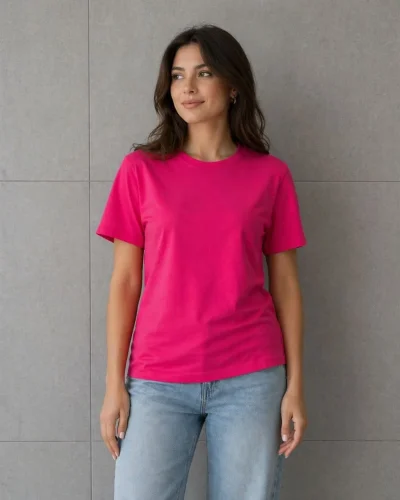 • Basic Cotton T-Shirt, Crew Neck, Solid Color, Relaxed Fit T-Shirt - Fuchsia