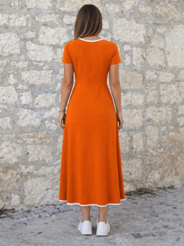 Women's short-sleeved, round-neck, flared midi viscose dress