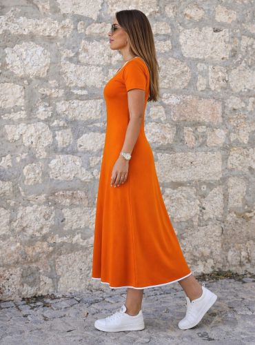 • Women's short-sleeved, round-neck, flared midi viscose dress