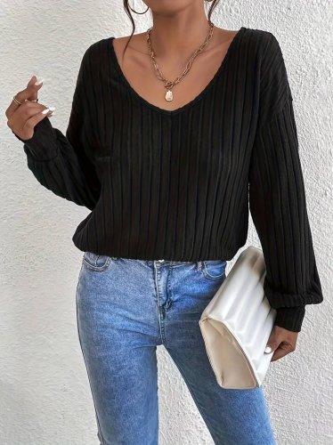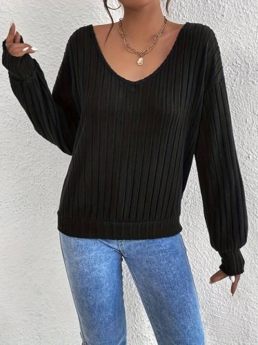 • Women's long sleeve v-neck window back lace detail thick ribbed camisole blouse