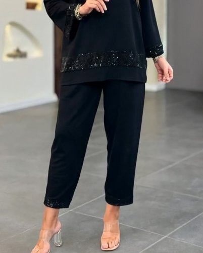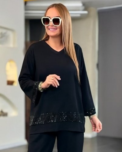• Women's long sleeve v-neck pulpayet viscose two-yarn blouse and trouser set
