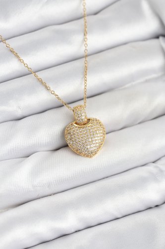 316L Steel Chain Gold Color Zircon Stone Heart Women's Necklace