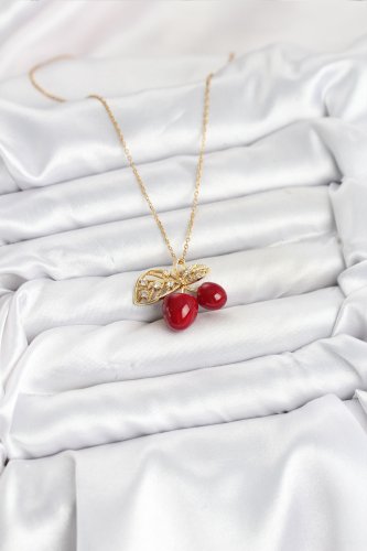 • 316L Steel Chain Leafy Cherry Model Gold Color Women's Necklace